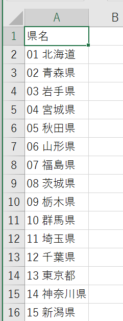 この作業,Excelのシート上に都道府県一覧を用意し,